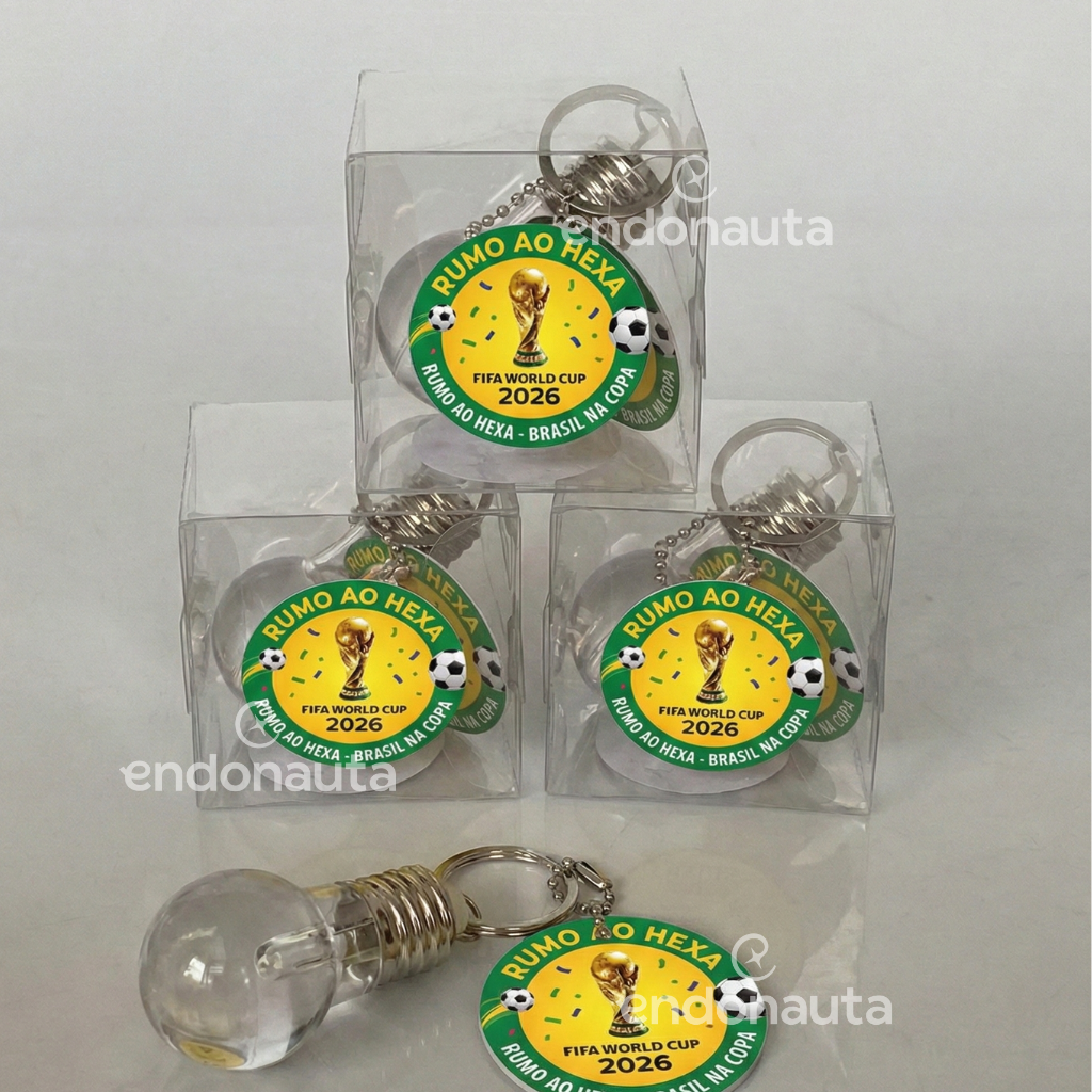 Ilumine o potencial da sua equipe com a Lâmpada da Criatividade! Um chaveiro de LED exclusivo do Portfólio Copa 2026, ideal para motivar seus craques, gerar engajamento e transformar ideias em golaços de inovação no endomarketing da sua empresa.