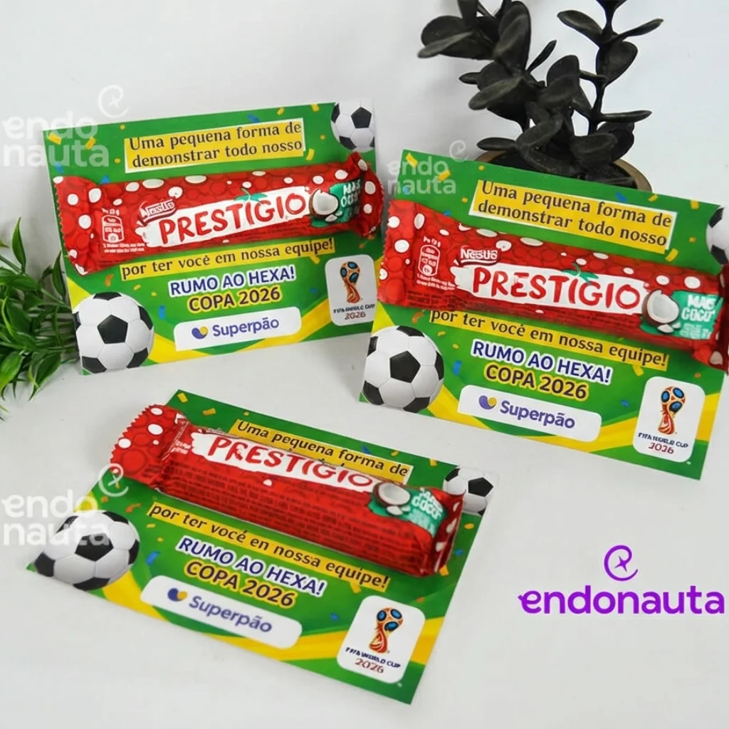 O Cartão Prestígio é a marca registrada de um campeão: o brinde ideal para demonstrar o valor de ter profissionais de elite em sua equipe rumo ao topo do mundo em 2026.Este presente foi desenvolvido como uma pequena forma de demonstrar todo o prestígio que a sua empresa sente por ter cada colaborador no time. Ao unir a tradição de um chocolate consagrado com uma mensagem de reconhecimento direto, a organização fortalece o vínculo emocional e incentiva a busca pela excelência. É o gesto perfeito para elevar o clima organizacional, promovendo sentimentos de orgulho e união necessários para enfrentar os desafios da jornada rumo ao Hexa